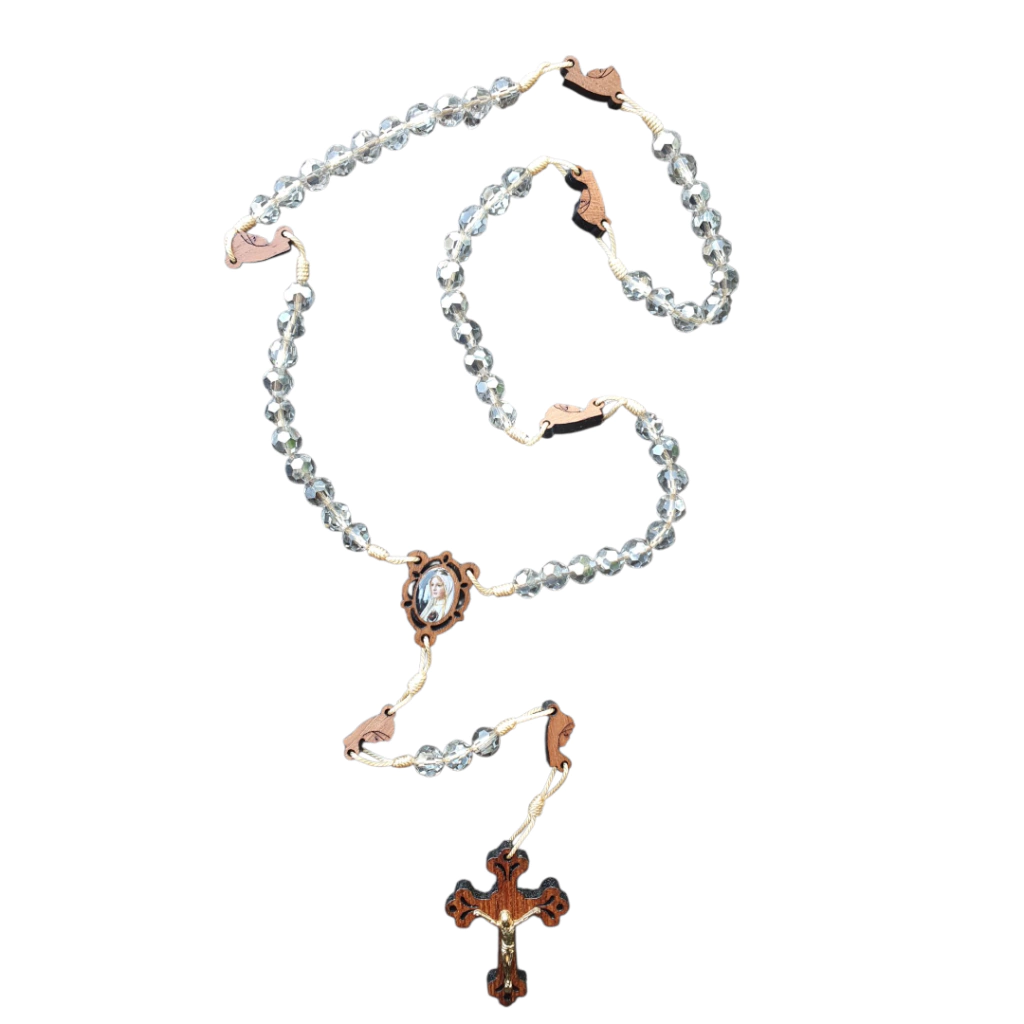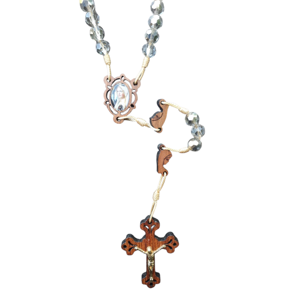 Terço Mariano N. Sra. de Fátima Cristal Transparente Fosco 8mm